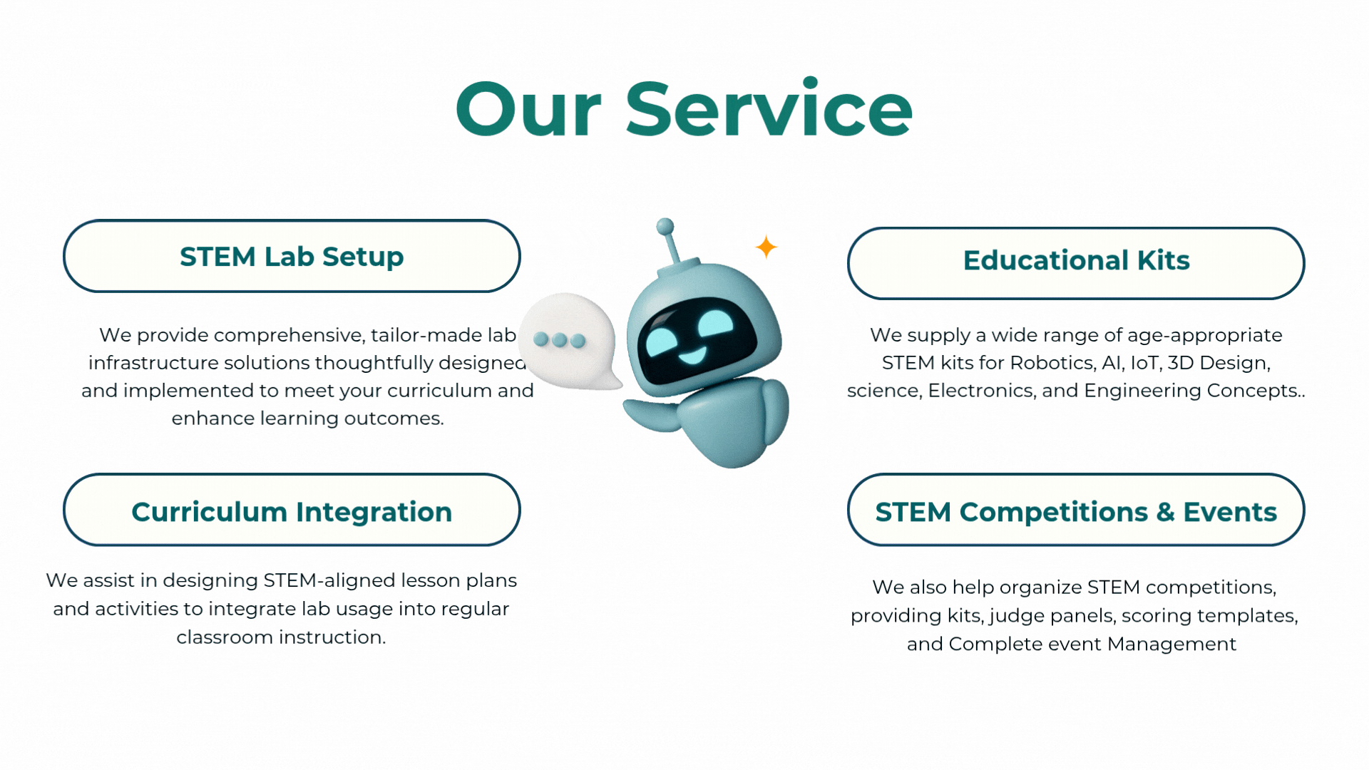 We bring together the power of Science, Technology, Engineering, and Mathematics through interactive labs, robotics programs, and real-world project experiences — equipping learners with essential skills like problem-solving, critical thinking, teamwork, and digital innovation.